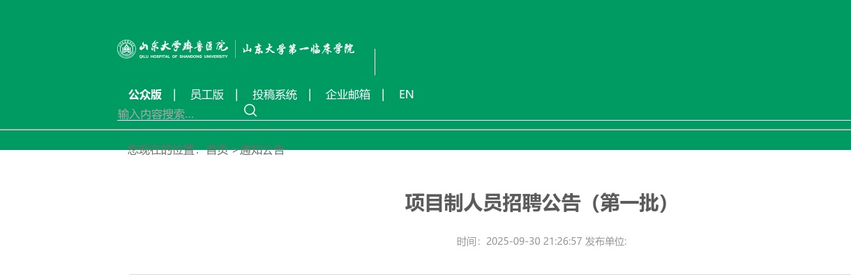 【2025山东大学齐鲁医院项目制人员招聘公告(第一批)】相关岗位: